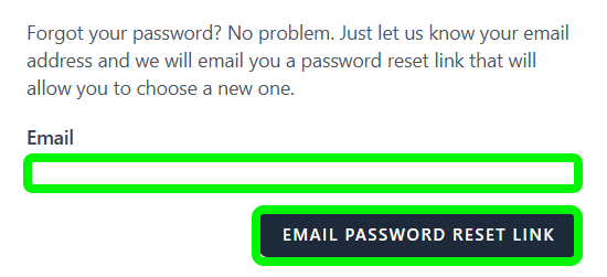 A new window will open, prompting you to enter the email address associated with your account. Enter your email and then click Email Password Reset Link.
